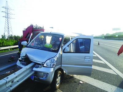 7月1日下午5時31分,滬寧高速南京往上海方向鎮江仙人山服務區匝道內發生一起交通事故,一輛面包車撞上高速公路中間的分道護欄網,導致面包車被防護柵欄直接貫穿,慘不忍睹。